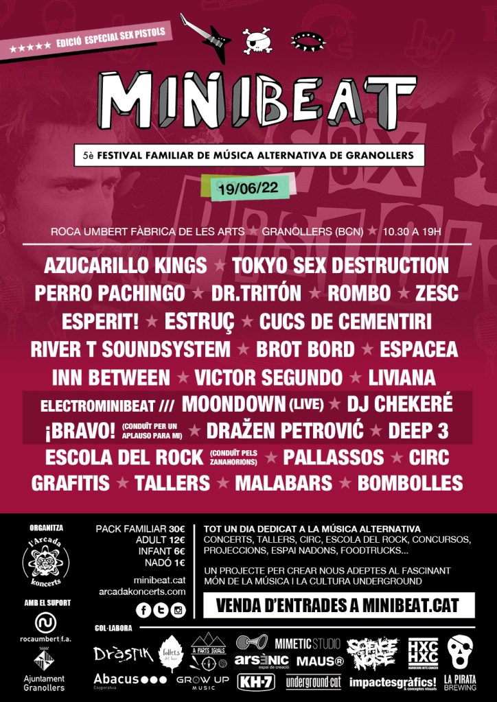 El proper 19 de juny arriba la 5a edició del Festival MiniBeat, organitzat per l’associació l’Arcada Koncerts amb el suport de Roca Umbert Fàbrica de les Arts. El Festival MiniBeat és un espai ideal per gaudir en família i amics de la millor música alternativa del moment en horari diürn, de 10.30 a 19 h. Com cada any, el festival ret homenatge a un personatge/banda que han marcat la història de la música, The Cure, David Bowie i l’Elvis Presley van ser els escollits a les anteriors edicions, i aquest any la protagonista serà la banda britànica Sex Pistols.