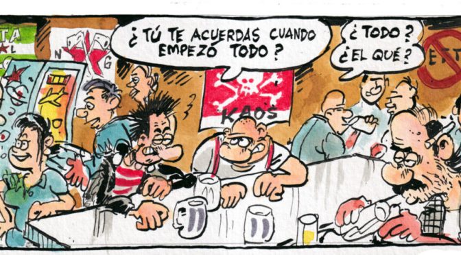 “A veure, tot va començar l’any… No ho sé… quin any van sortir els Sex Pistols? El 1977?” Benvinguts a HISTORIAS DEL PUNK. Un còmic en què Carlos Azagra i Encarna Revuelta han encarregat als seus personatges Pedro Pico i Pico Vena que facin un bon repàs a la història del punk espanyol. Un viatge a peu per la memòria creuant a través d’esdeveniments, concerts, festivals, anècdotes ben sucoses, estils i una barbaritat de grups fent canya. Perquè com bé diuen… “Si no somos nosotros los que contamos la historia… alguien la contará. Y seguramente mal.”