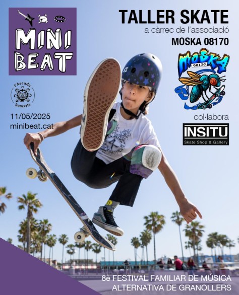 Per fi tenim unes petites rampes skate al MiniBeat, gràcies a l’associació de Montornès MOSKA 08170 i la col·laboració de la botiga skate de Granollers InSitu. Un taller per practicar amb l’skate amb uns monitors que t’explicaran les parts més essencials d’aquest esport.